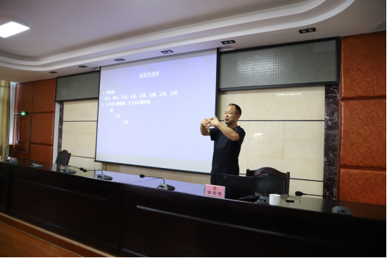 本次讲座特邀保山市红十字会二级调研员,市政协委员,云南省医院协会、健康教育学会常务理事、市科协常委金常德主讲。他以《吃动平衡走向健康》为专题,从“中国梦,从健康梦起步””21世纪的健康标准”“国际社会的保健共识”“吃动平衡,走向健康”四个方面进行生动阐述,并结合日常生活实际,重点讲解疾病预防保健知识,倡导大家要养成科学文明健康的生活方式,做到合理膳食、适量运动、戒烟限酒、心理平衡。授课现场,金常德还与台下同志开展互动,带领并指导大家做科学健身操。