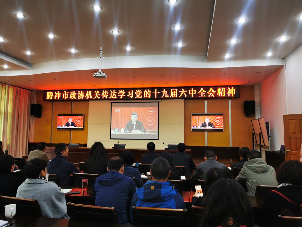 11月15日上午,腾冲市政协党组书记、主席杨存宝主持召开政协机关学习会,组织机关全体干部职工集中观看《中国共产党第十九届中央委员会第六次全体会议公报》相关新闻报道,并就机关学习贯彻全会精神作出安排部署。