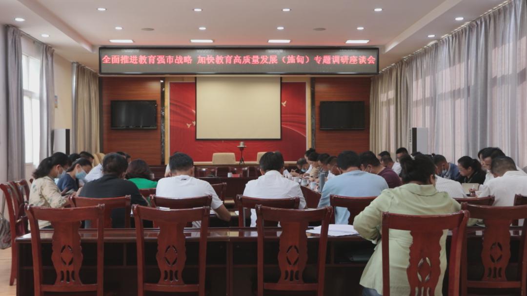 在座谈会上,调研组一行听取了施甸县推进教育高质量发展工作情况汇报,对施甸县教育发展所取得的成绩表示肯定,并强调,要以永不退缩的劲头大抓教育,把优先发展教育放在更加突出位置,把教育作为加快全县发展的基础性、先导性和全局性工作来抓,全力推动教育高质量发展。要以永不言弃的精神狠抓教育,以坚强的保障营造良好环境,为教育发展凝聚共识、汇聚合力,推动施甸教育实现触底反弹、勇争一流。要以永不懈怠的状态常抓教育,把教育优先发展作为“一把手”工程,党政齐抓共管,强化政策措施、资金投入、人力资源等要素保障,汇聚教育发展合力。深化教育干部队伍管理改革,创新办学管理机制和教师招聘机制,积极探索适合施甸教育发展需要的新道路、新模式。营造社会各界群策群力、同向发力,构建全社会共同关心支持教育的良好氛围。