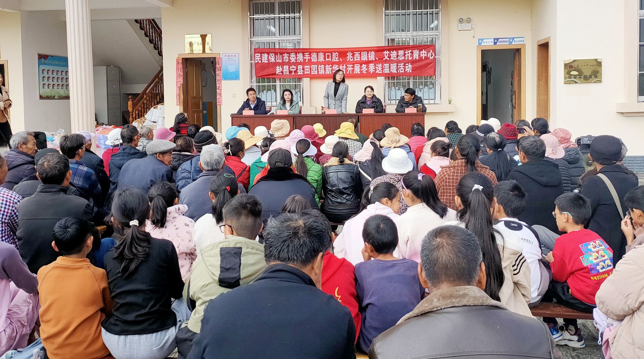 11月30日,民建保山市委会同保山德康口腔、保山兆西眼镜、保山艾迪思托育中心,赴昌宁县田园镇新华村围绕“关注一老一小”主题,开展冬季送温暖活动。活动中,保山兆西眼镜为群众开展眼科义诊,为远视群众捐赠价值100元/副老花镜200副;保山德康口腔医院为社区群众开展口腔义诊,捐赠牙膏、牙刷等价值50元/份的口腔护理包200份;保山艾迪思托育服务中心为留守儿童捐赠羽绒马甲、手套等价值100元/份的衣物用品31份。