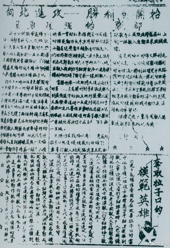 1935年9月20日,红一军团《战士报》刊登的红军攻破腊子口的消息。