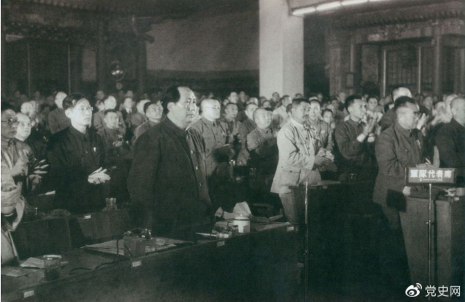 1949年9月30日,毛泽东当选中华人民共和国中央人民政府主席,全场起立,鼓掌祝贺。