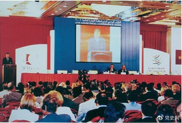 2001年11月10日,在卡塔尔首都多哈举行的世界贸易组织第四届部长级会议以全体协商一致的方式,审议并通过中国加入世界贸易组织的决定。